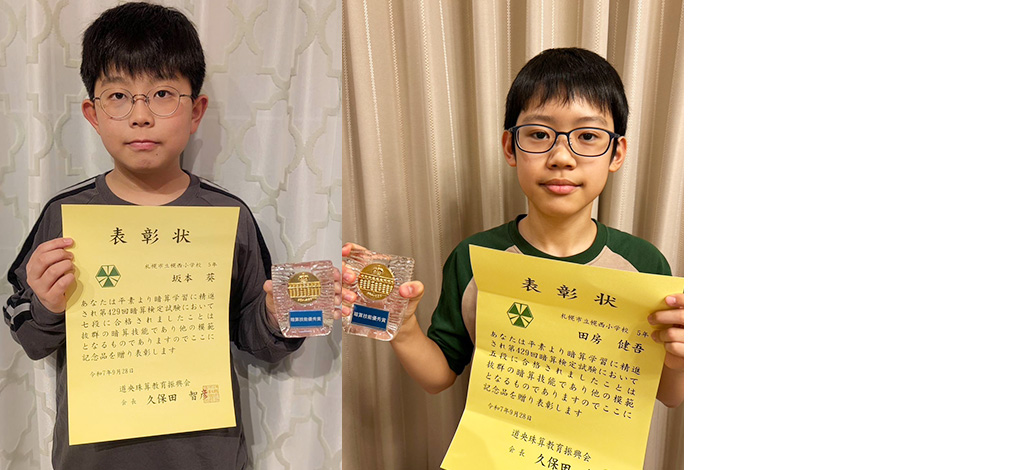 第430回暗算検定試験において、技能優秀生徒表彰がありました。