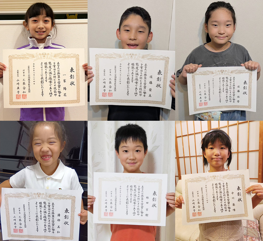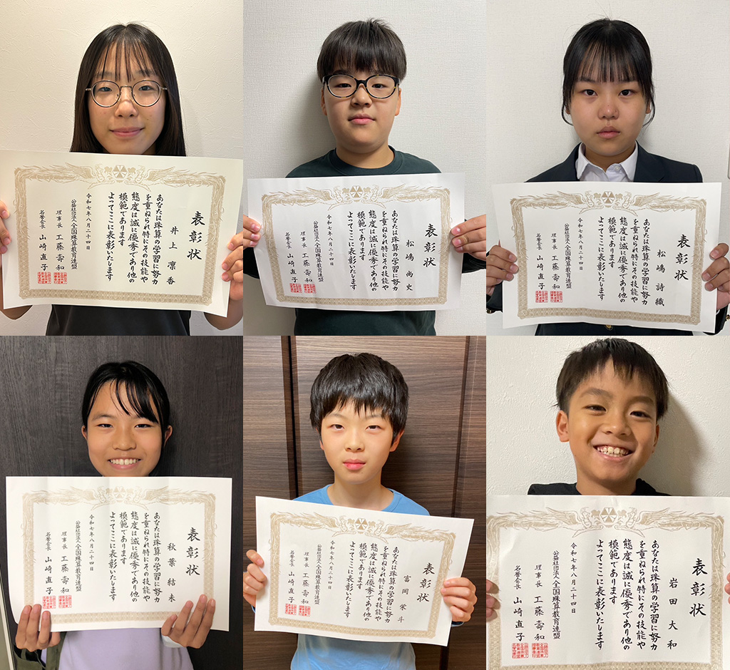 珠算にて、全珠連より令和7年度優秀模範生徒表彰がありました。